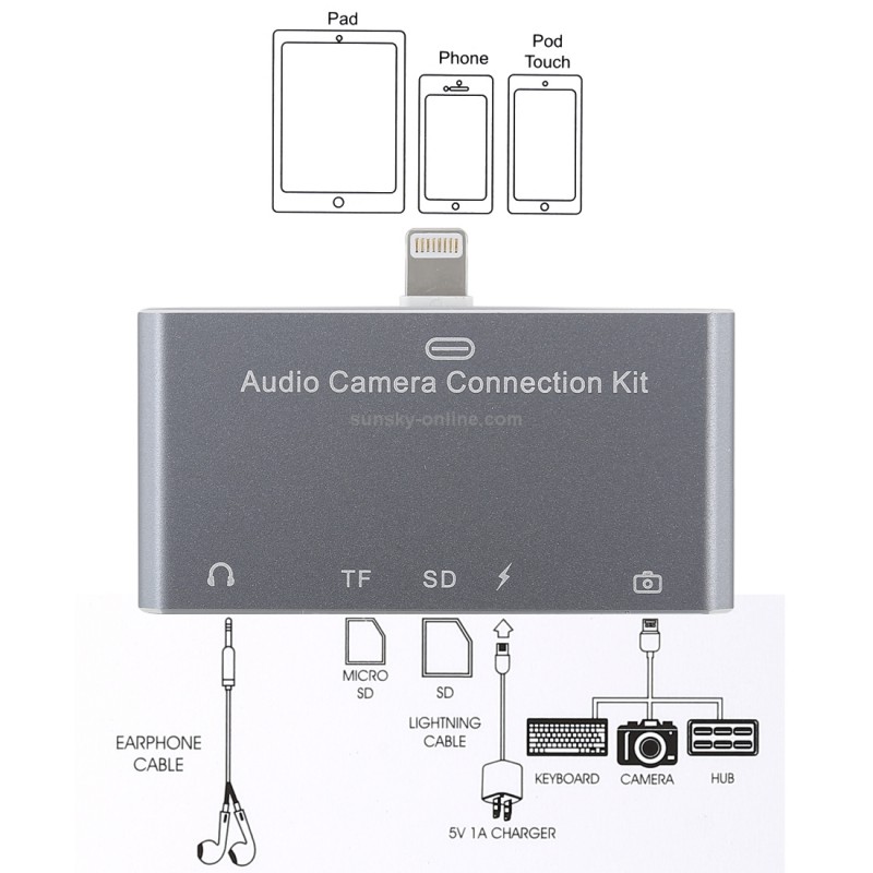 Tags: D-198 5 in 1 8 Pin to USB HUB +USB-C / Type-C + 3.5mm Earphone + SD + TF Card Reader for MacBook, PC, Laptop, Smart Phones