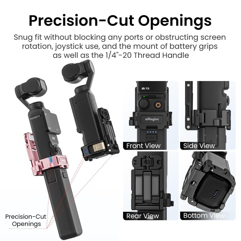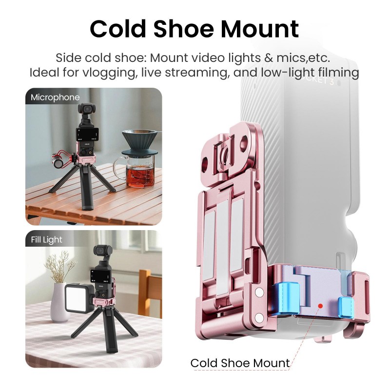 3. Abundant Interfaces: Features 2 Action quick-release mounts, 2x 1/4 screw holes, 1 dual-claw mount, 1 Arca-Swiss mount, and 1 magnetic surface. Rich expansion interfaces unlock Pocket 3s full-scene creative potential.