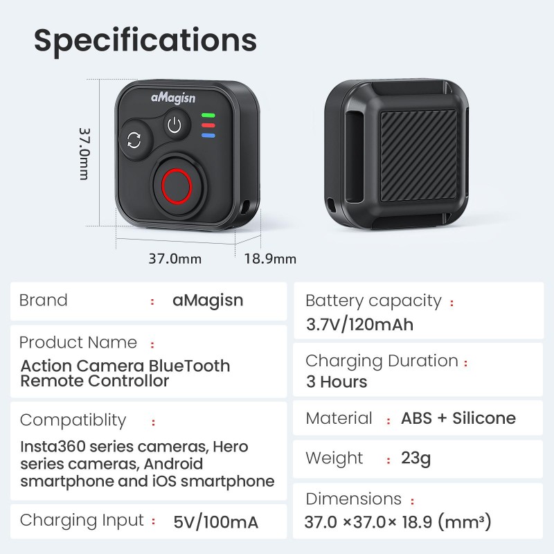Tags: aMagisn Wireless Bluetooth Remote Control for Insta360, GoPro Hero Cameras & Smartphones - 50m Long Range