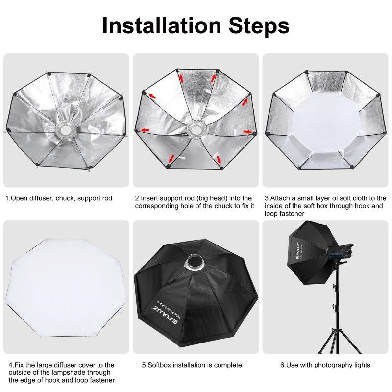 1. Professional, 8-pole 95cm foldable octagon softbox.