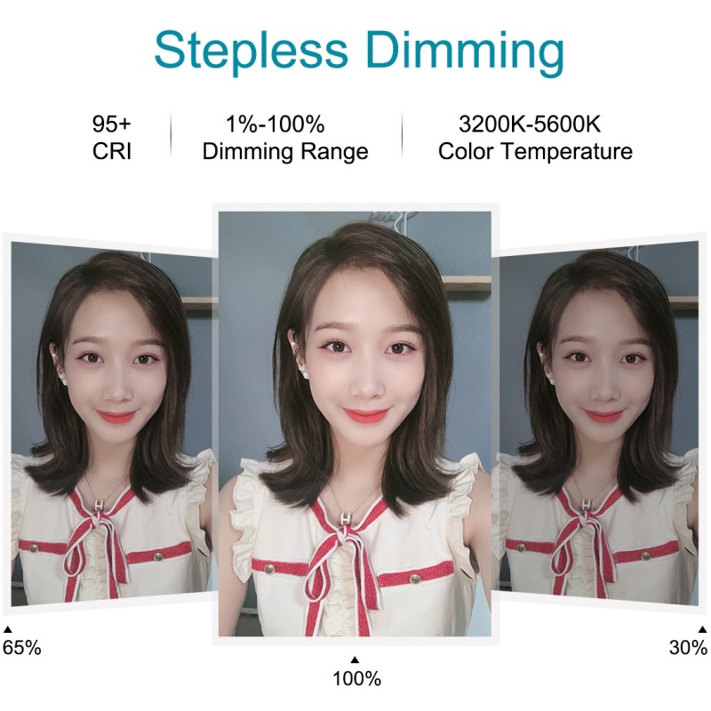 4. 3 colors lighting mode adjustable brightness for your choose, you can adjust the color and brightness very easily, excellent brightness can be achieved without installing extra colorful filters. Three colors of soft natural light illuminate your beauty in different occasions.