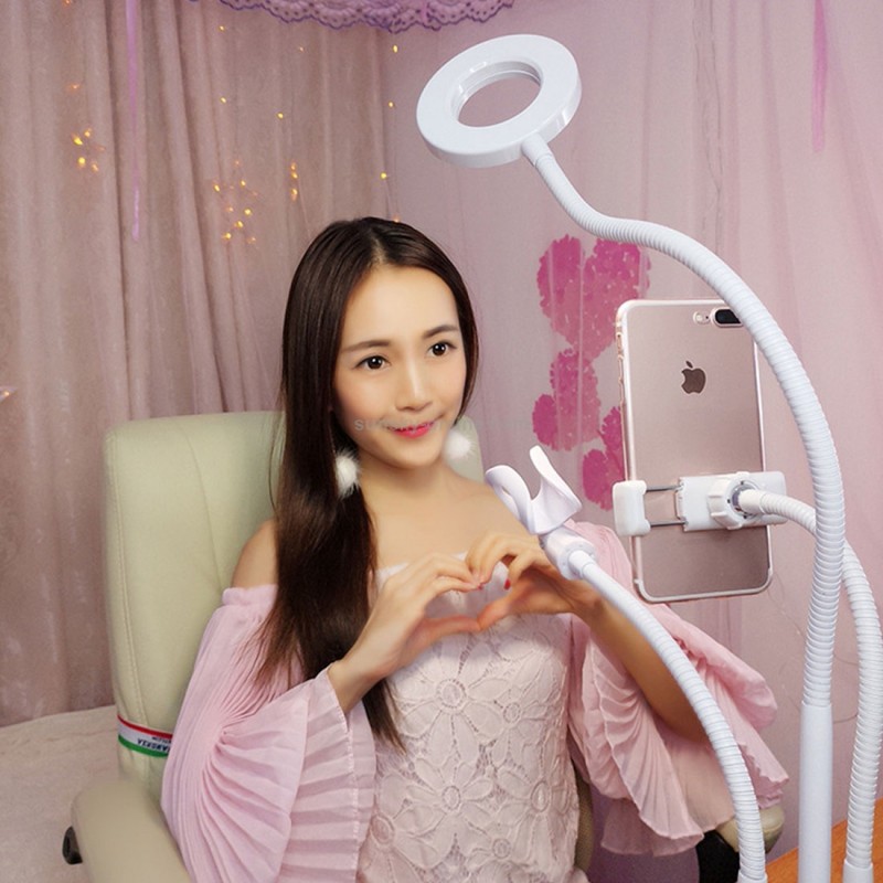 Tags: Base Three Heads Universal Cell Phone Holder Bracket Selfie Ring Light with 3-Color Light Adjustment