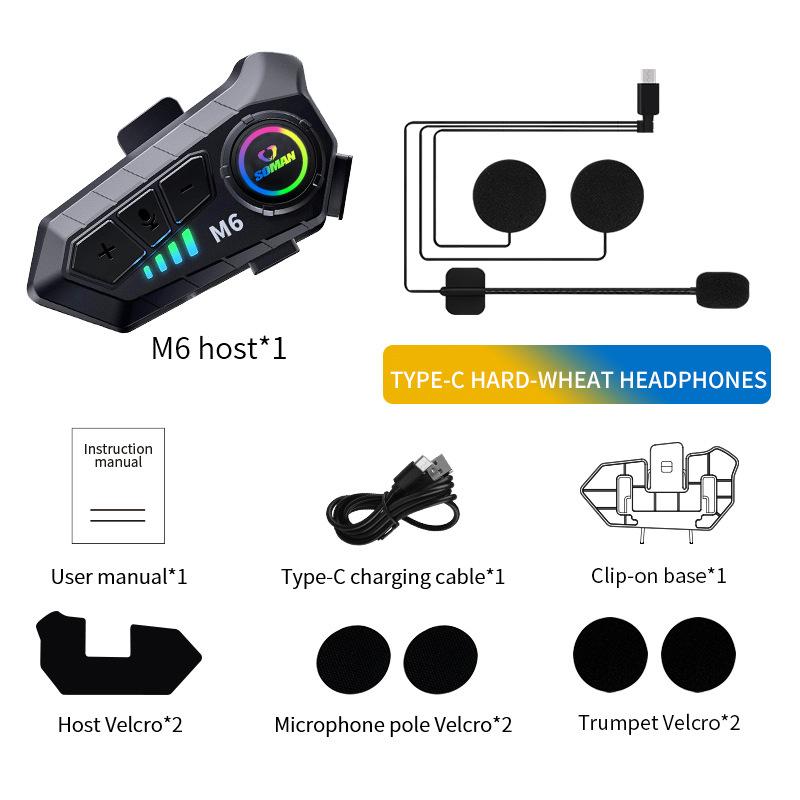 SOMAN Motorcycle Helmet Bluetooth Headset Stereo Voice Microphone, Style:M6-Hard Mic