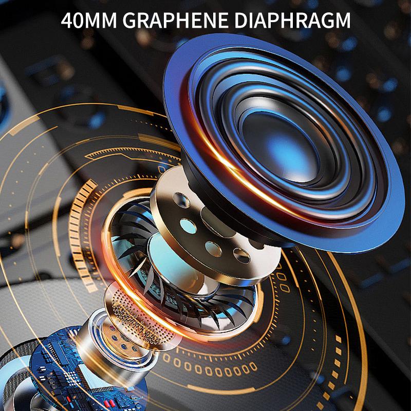 Description 1. Bluetooth 5.3, stable connection2. IPX6 waterproof, suitable for outdoor use3. 40mm graphene diaphragm s..