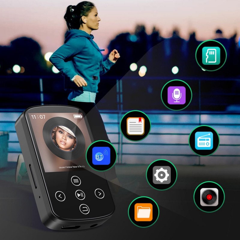 Tags: MP3 Bluetooth Music Player HIFI Sports Clip Touch Screen MP4, Memory: No TF Card(Black)