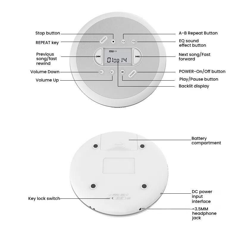 Kecag Mini Portable CD Player Walkman Study and Repeat Retro MP3 Music CD Player(KC-707)