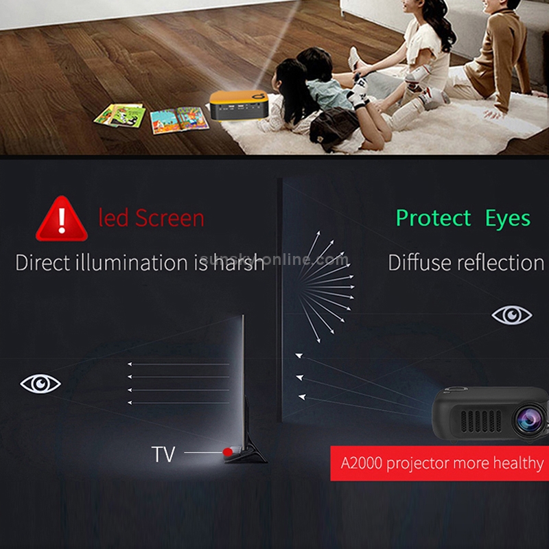 Tags: A2000 1080P Mini Portable Smart Projector Children Projector, EU Plug(Black)