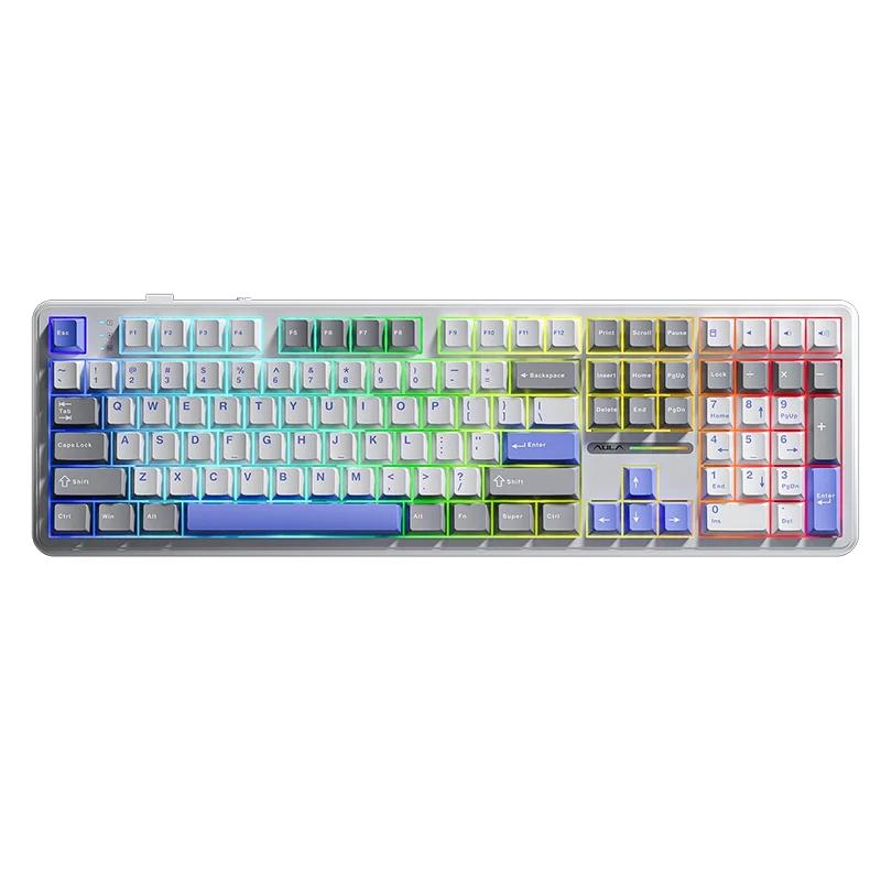 Tags: AULA F108 108 Keys Wired/2.4G/Bluetooth Three Model Customizable RGB Gaming Mechanical Keyboard(Gray + White + Blue Caramel Latte Axis)