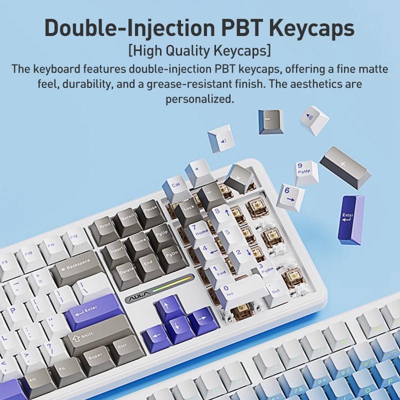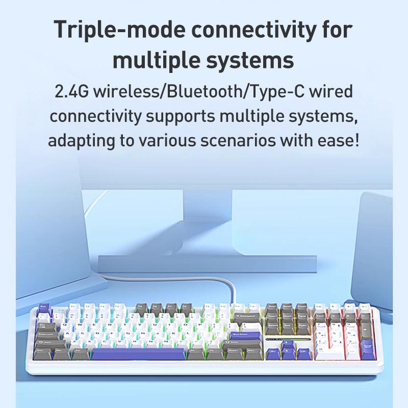 AULA F108 108 Keys Wired/2.4G/Bluetooth Three Model Customizable RGB Gaming Mechanical Keyboard(Gray + White + Blue Caramel Latte Axis)
