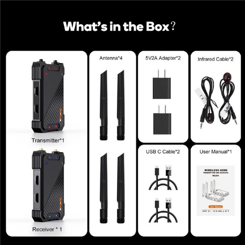 4.Versatile Connectivity:Features dual HDMI outputs on the receiver, supporting one-to-many transmission for multiple display setups