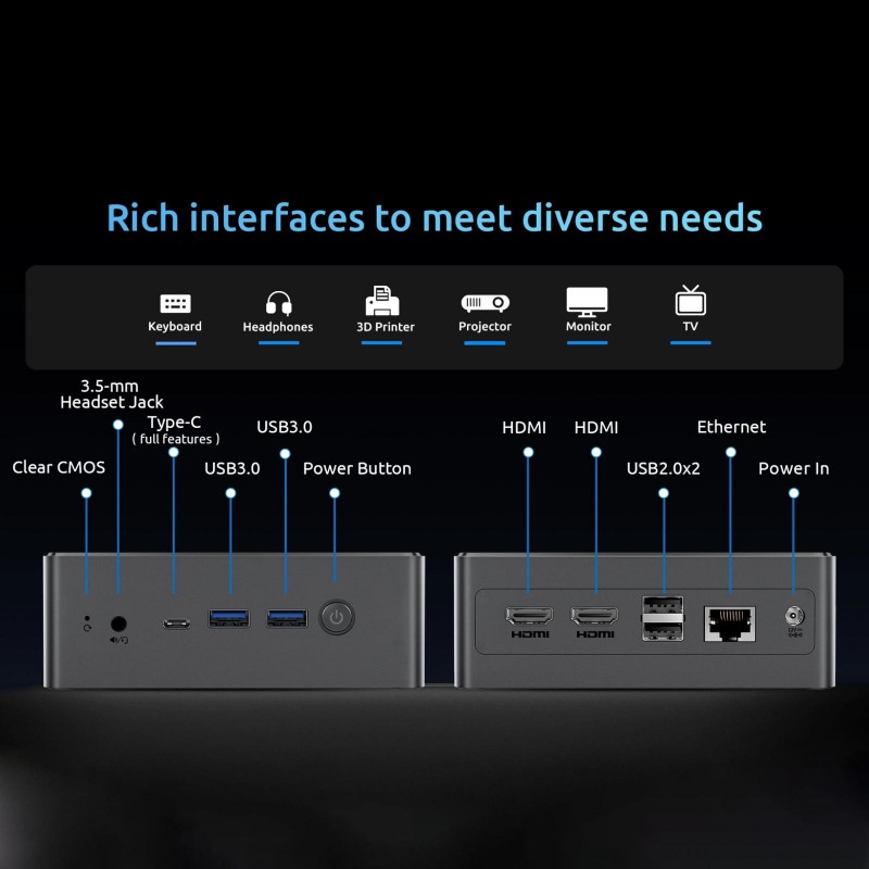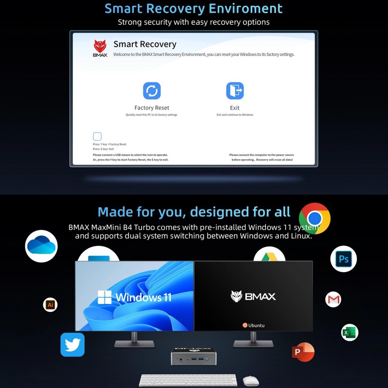 Tags: BMAX B4 Turbo Windows 11 Mini PC, 16GB+1TB, Intel Processor N150, Support 3 Monitors Output(US Plug)