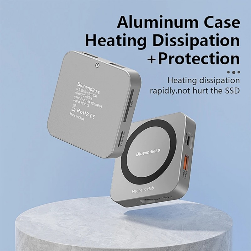 Tags: Blueendless 8-In-1 Magnetic HUB With M.2 NVMe/SATA SSD Enclosure (HDMI+PD100W+USB-C/Type-C 3.2+USB-A 3.2+SD+TF+AUX)