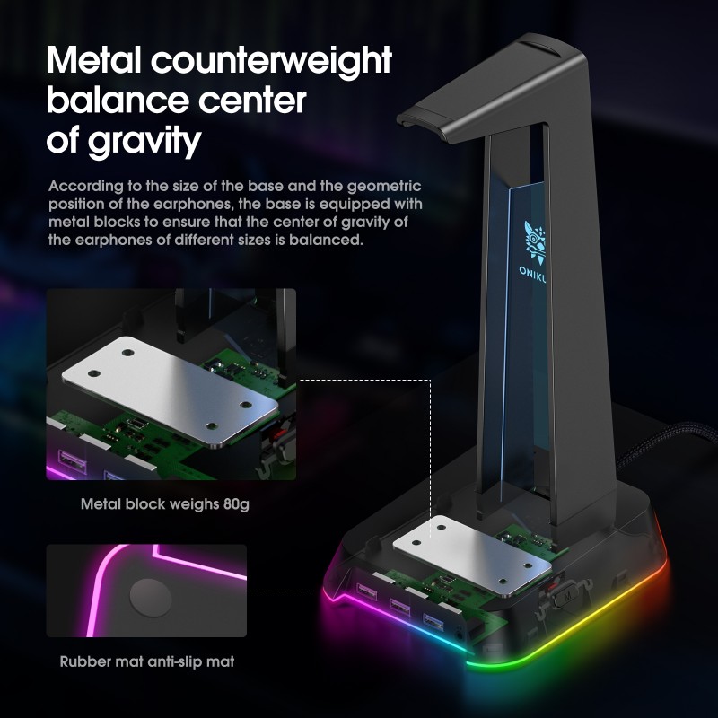 ONIKUMA ST-2 RGB Lighting Headset Holder Stand(Black)