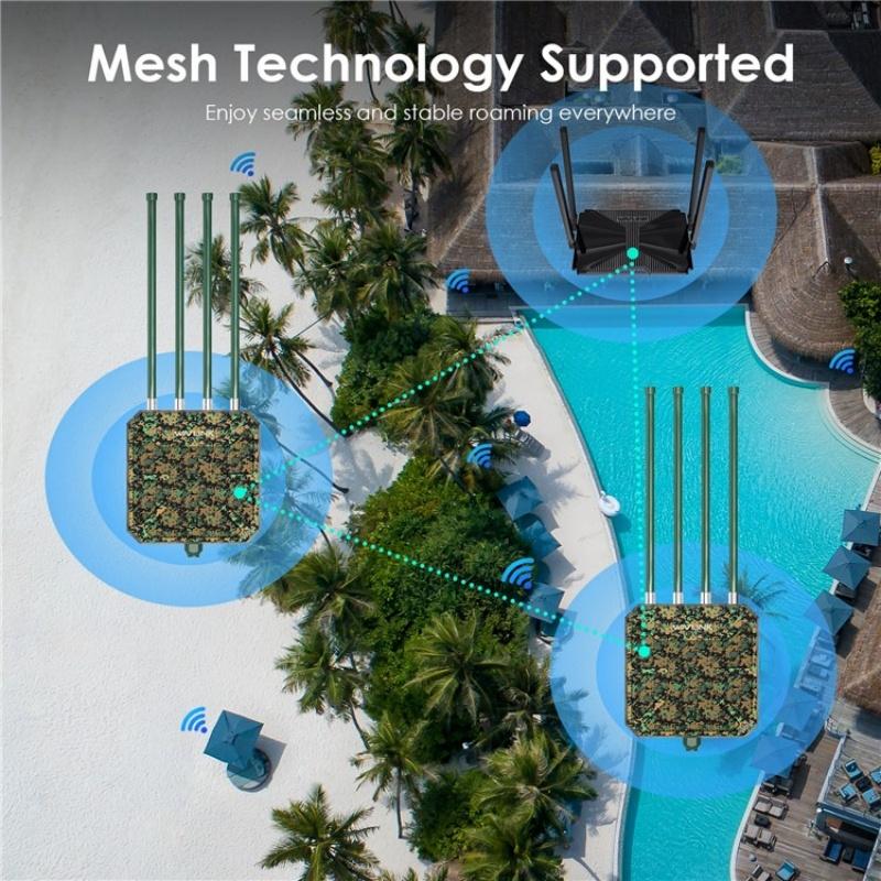 5.Multiple modes, flexible use:Support mesh, AP, router, repeater, AP + repeater and other modes to meet your different needs, suitable for more outdoor connection scenarios. Router/AP mode is perfect for converting wired connections to wireless networks, while in mesh mode, you can enjoy seamless WiFi with a single network name and password