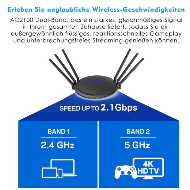 1.High-Speed Internet Upgrade: Upgraded to 2100Mbps high-speed internet (2.4GHz 300Mbps + 5GHz 1733Mbps), reducing buffering and ideal for 4K streaming or gaming