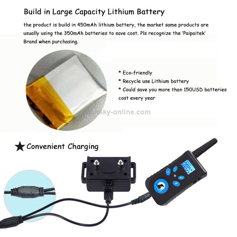 Description 1. Function: vibration + electric shock + sound (remote control + automatic barking) 2. Remote control distance: without interference 500m 3. Worki..