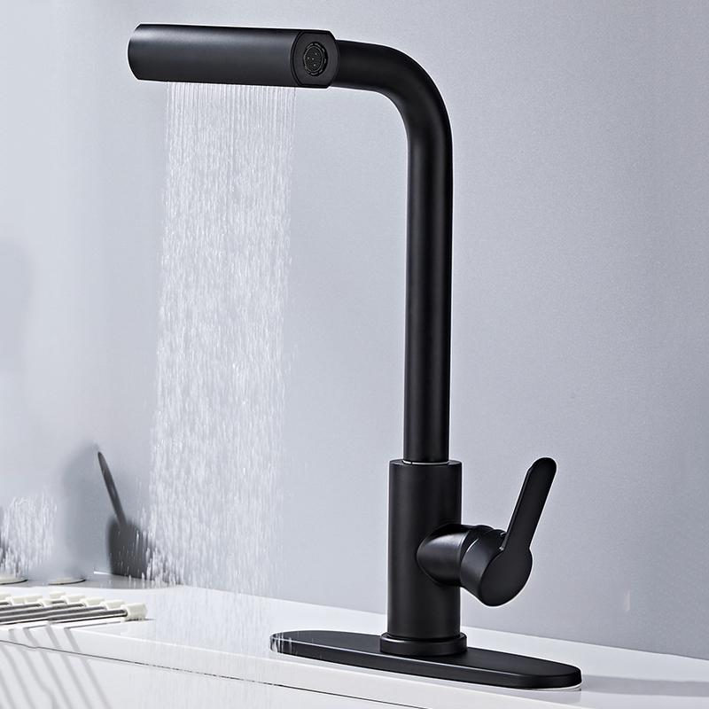 Tags: Pull-Out 4 Modes Waterfall Kitchen Faucet Hot/Cold Water Mixer Tap With Base(Black)