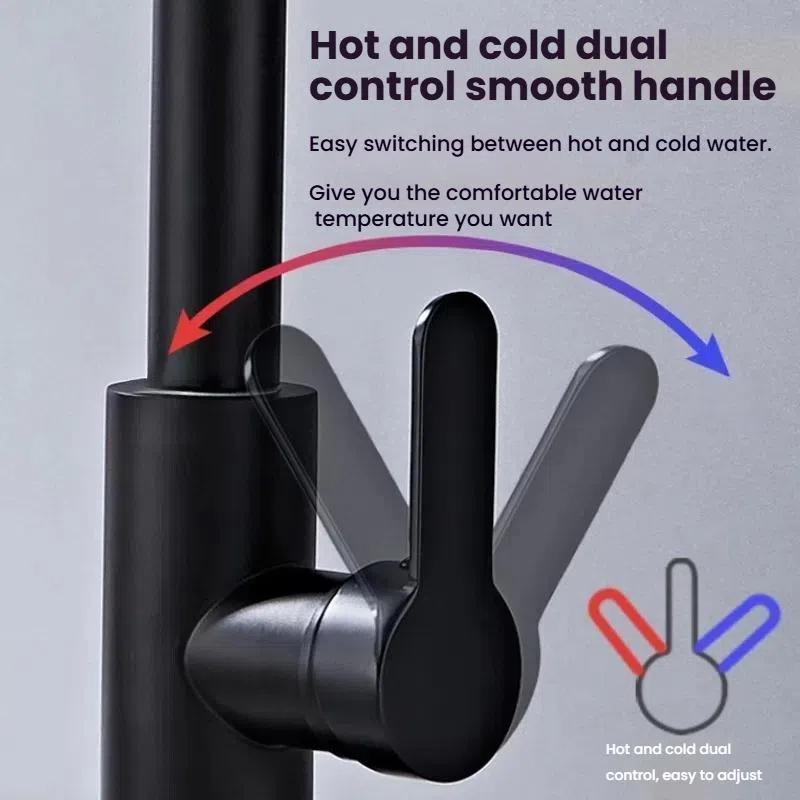 4. Hot and cold dual control system: ceramic valve core precise temperature control, smooth knob to easily adjust water temperature