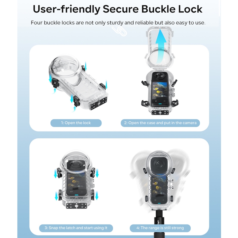 1. Quick-release fully invisible diving case for Insta360 X4, solid shell, high-quality sealing ring, easy to cope with 50 meters underwater water pressure